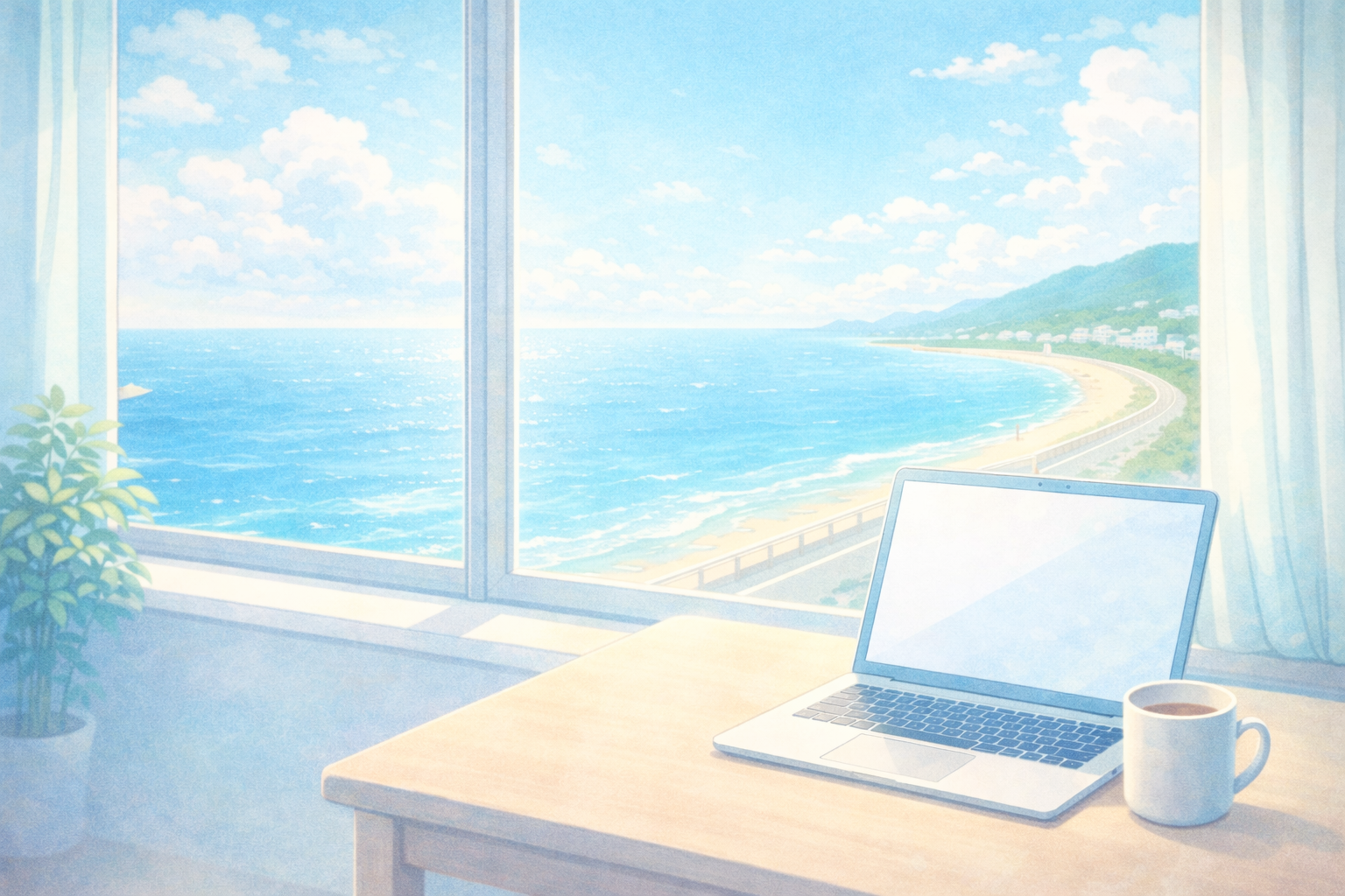 海に面した窓からは優しいそよ風が入ってきます