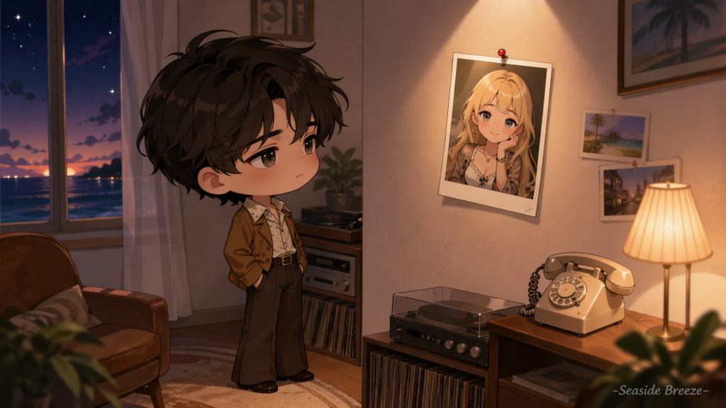 だからこそ、聞き手の私たちはどうしても音の方に気を取られてしまいます。でもこの曲は歌詞を見てみると、音の雰囲気とは少し違った表情をしています。曲名では「恋なんかしていない」と言っているのに、歌の中の男性はそんなに割り切れた感情ではなさそうです。相手の写真は壁に貼ったままだし、自分から電話までかけています。しかし、それを大した意味に取るななんて言い方までしてしまいます。おまけに友だちには話さないようにと釘まで刺してしまいます。どう見ても未練を引きずっているのに、口では平気だと強がっている男性の姿が見えてきます。